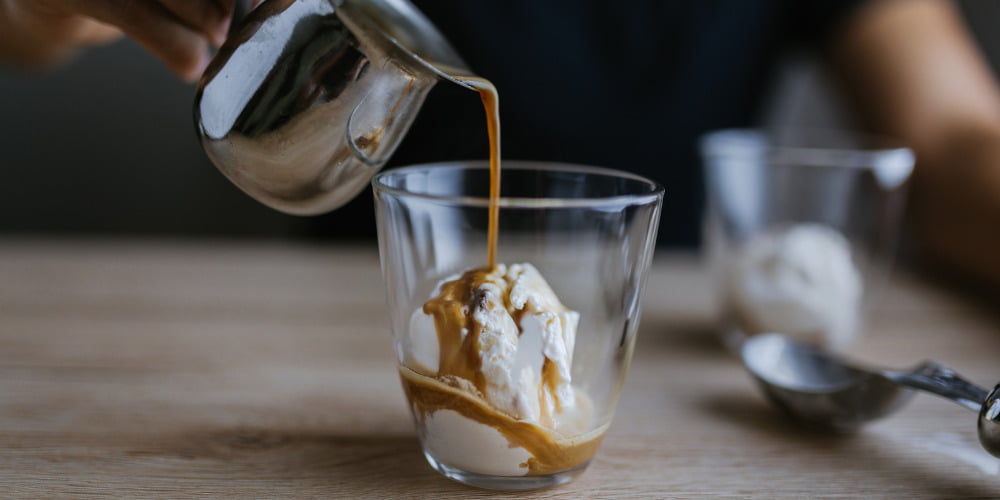 - Prepare a shot of espresso or strong coffee and pour it over the ice cream.